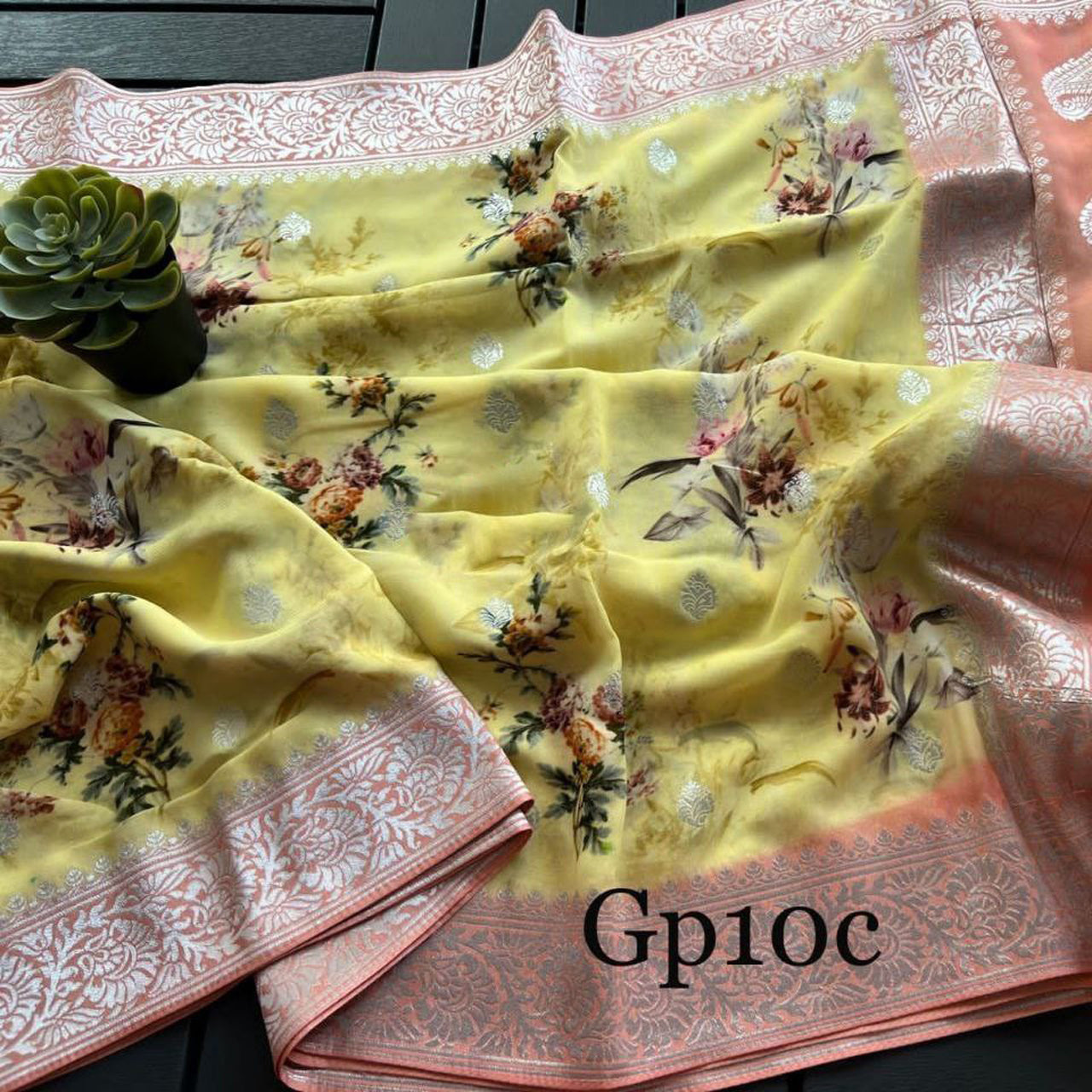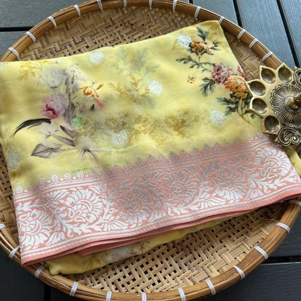 Tusser soft silk sarees with allover floral digital printed with zari border