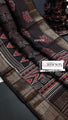 Black Pure handloom Maheswari print saree featuring a beautiful jari weaving border, blending traditional craftsmanship
