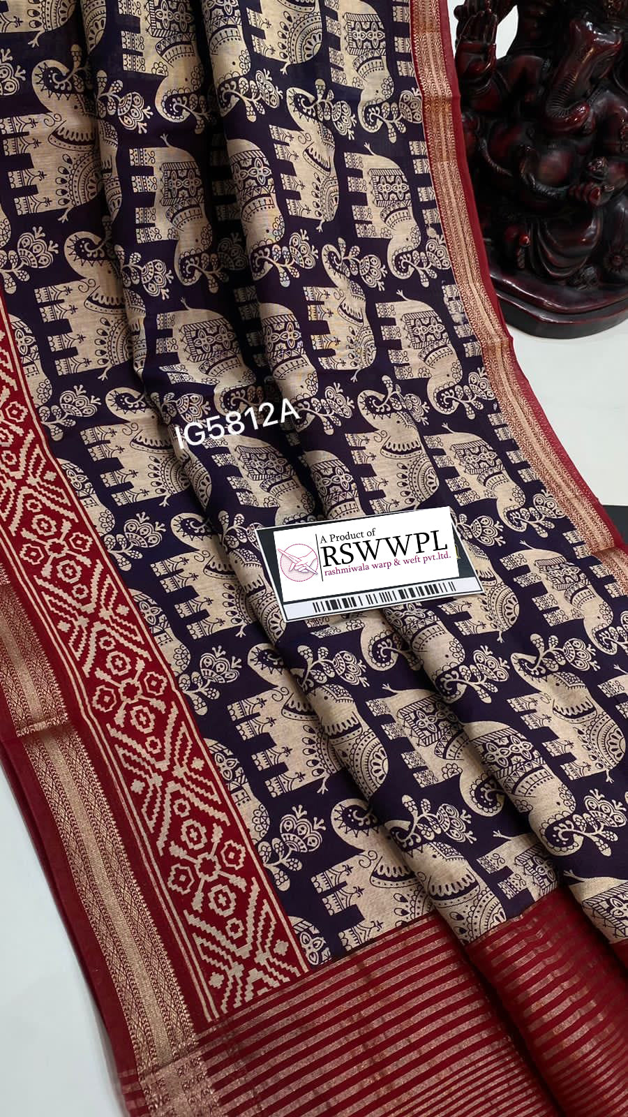 Red And Black Assam Pattu Wedding Saree Digital Printed Fancy Dola Silk