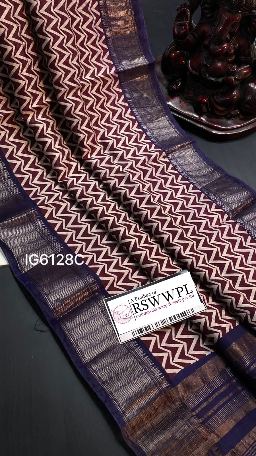 Elegant brown Dola silk saree with beautiful prints, combining traditional charm and modern elegance