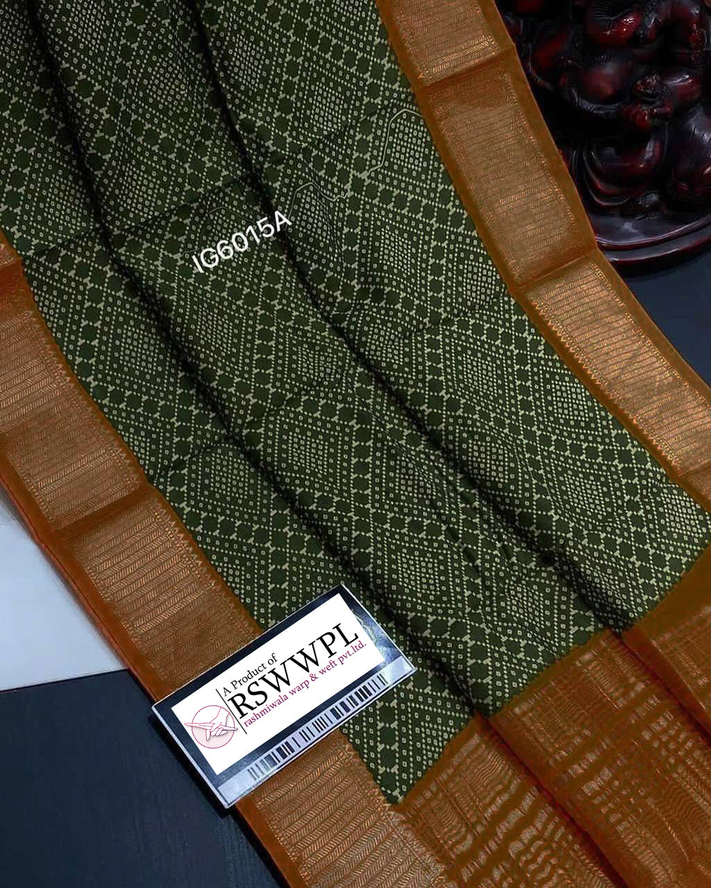 Stylish fancy Ikat print, vibrant Green colors, and intricate patterns.