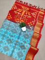 Handcrafted Ikkat Silk Saree In Sky Blue Traditional Artistry