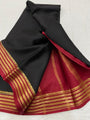 Opulent Wine And Black Soft Silk Saree With Traditional Zari And Mysore Inspired Style
