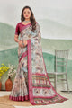 Saree Type :pure Linen silk sarees Traditional Digital Print PALLU with BLOUSE