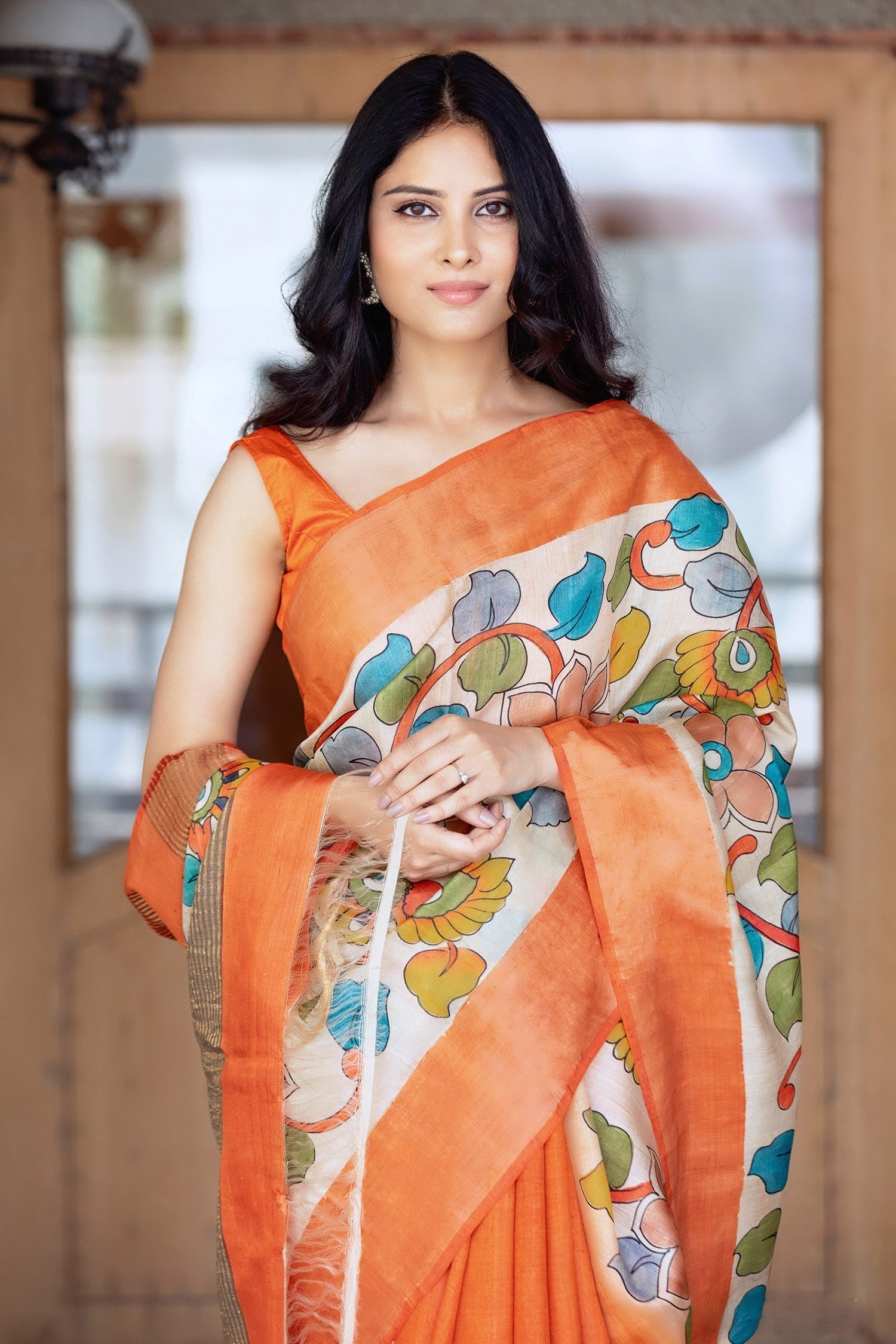 Handloom Tussar Silk Saree Featuring Traditional Kalamkari Art