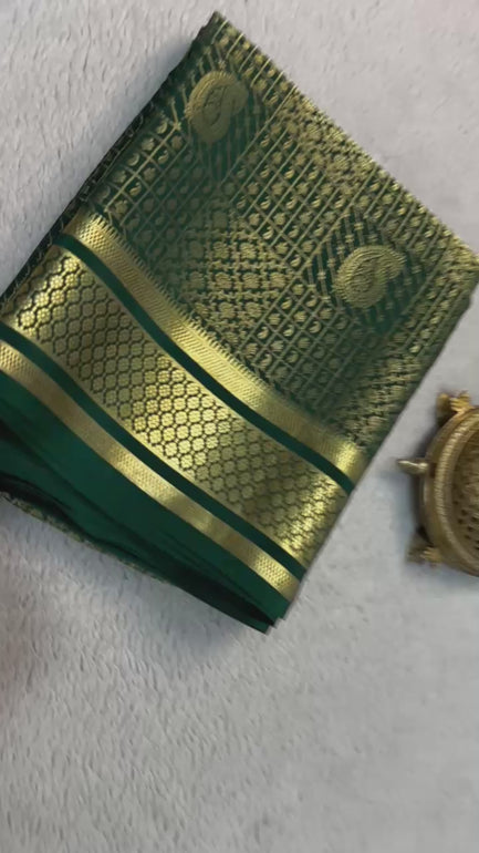 Wrap Yourself in Royalty: Exclusive Pure Brocade Mysore Silk Sarees in Bottle Green