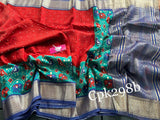 Wedding Wear Red Tussar Silk Saree Handloom Style Zari Border And Digital Embellishment