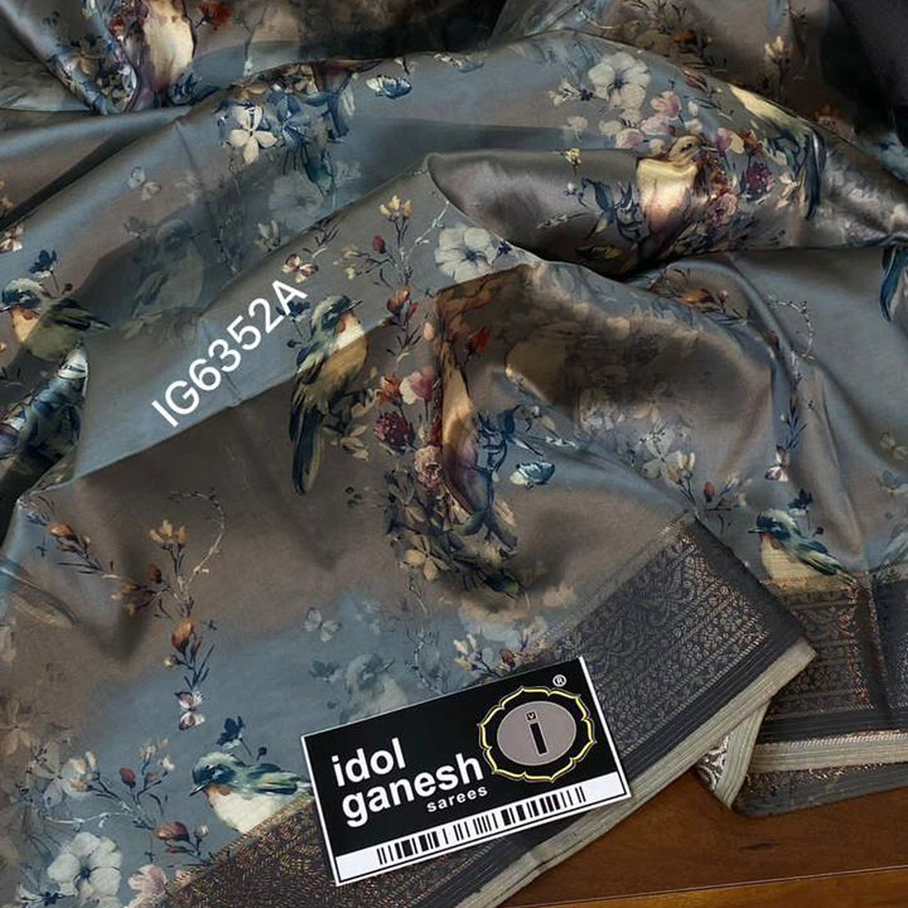 Handloom Fancy Silk Pattu Grey Color Bird Print Saree
