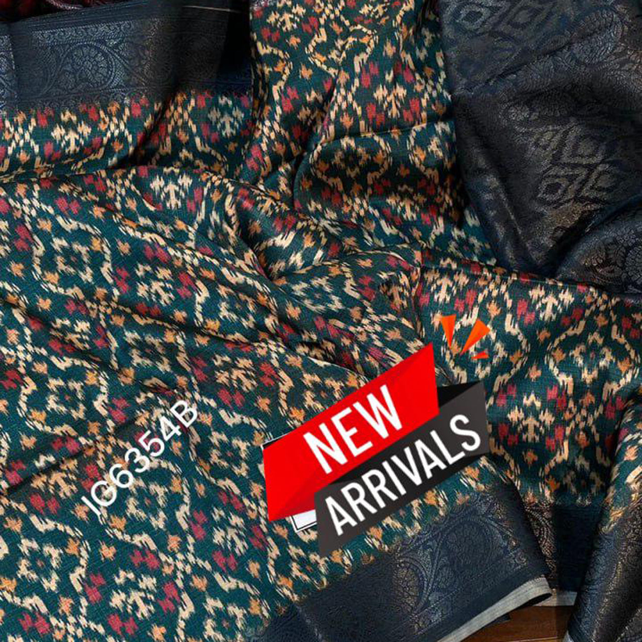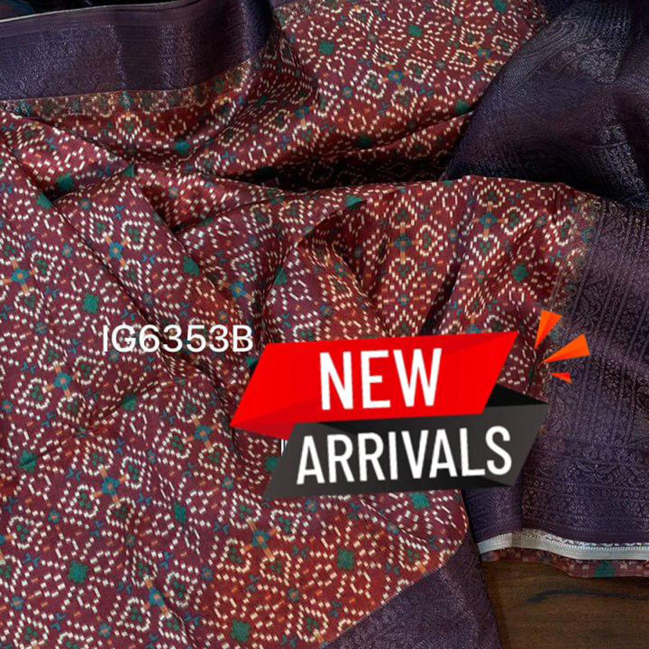 Tusser soft silk sarees with allover patola digital printed with zari border