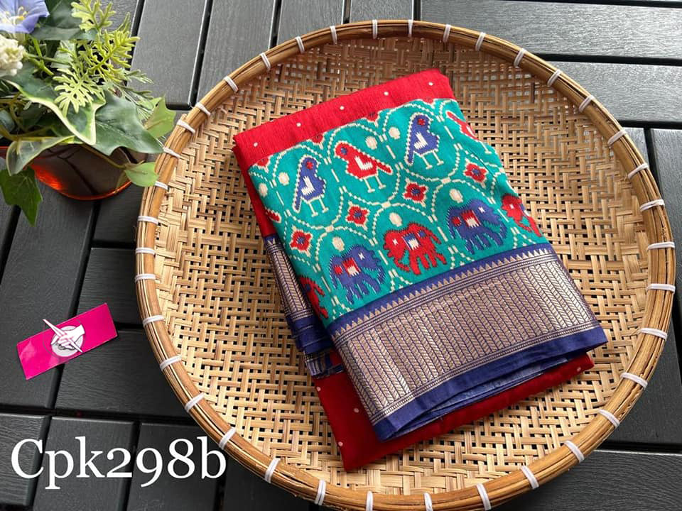 Glam Ikkat Cyan Kanchi Border Silk Saree With Print Detailing