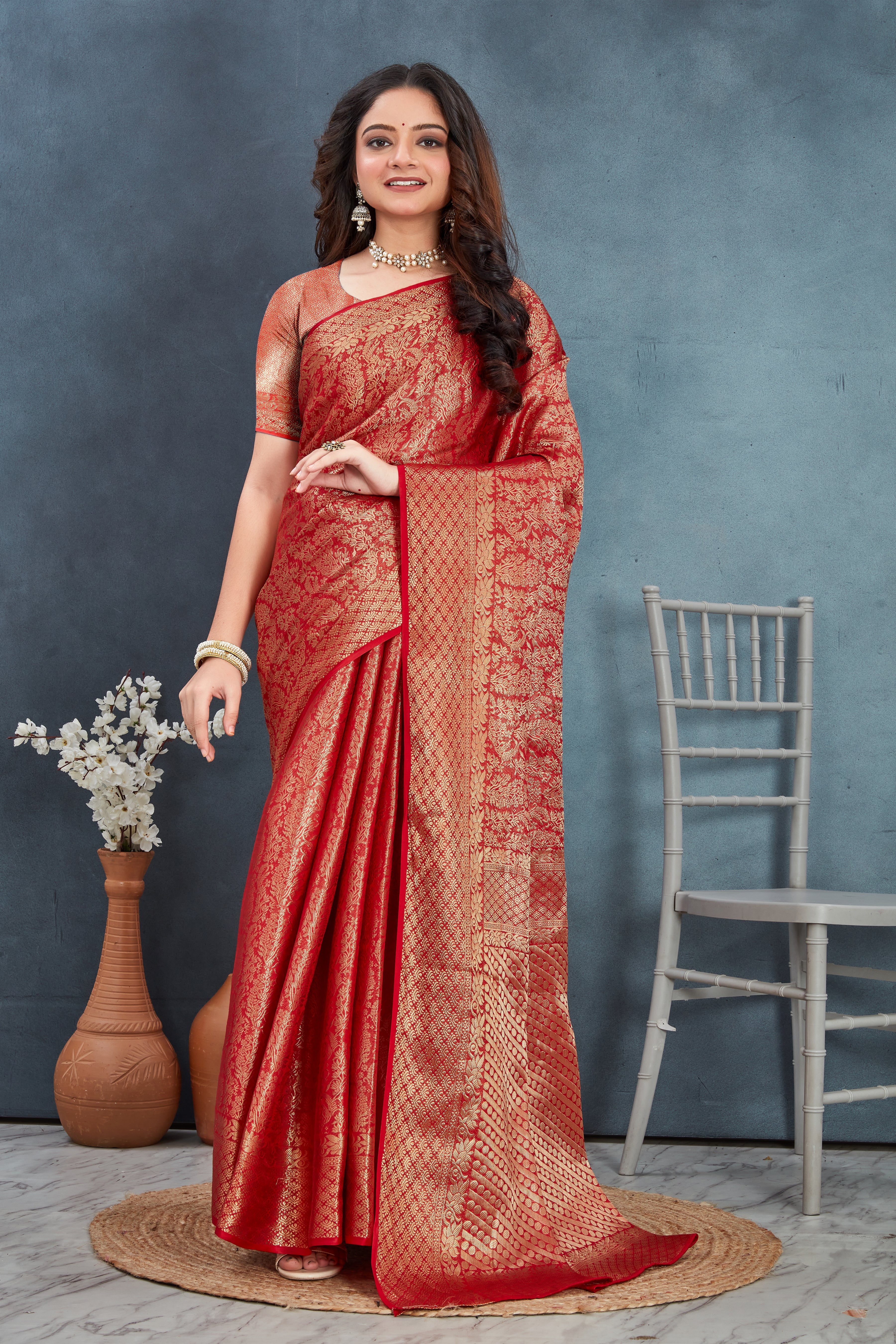 Light Brown Gujarati Style Satin Drape Classic Grace Saree