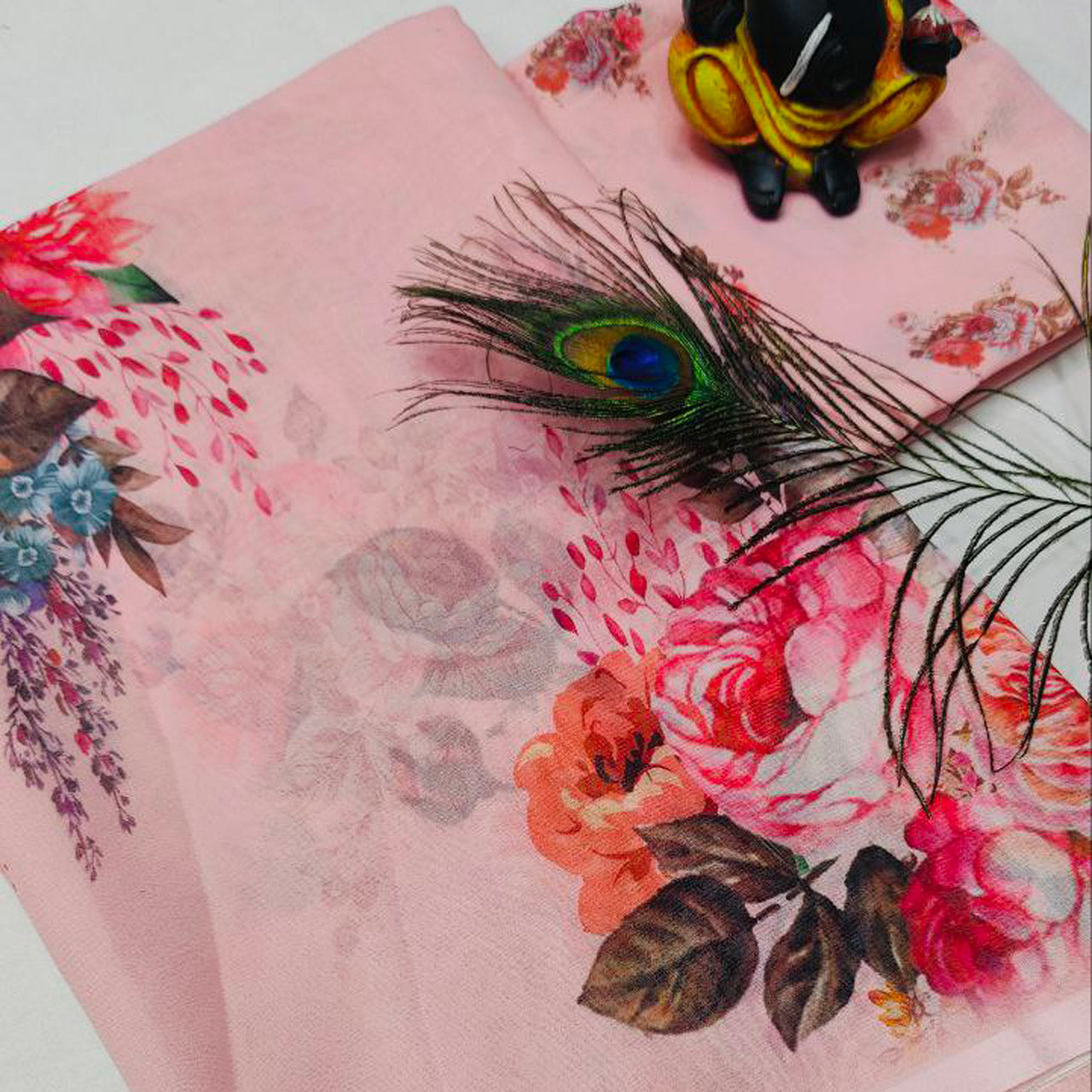Georgette Fabric Digital Floral Print Saree In Peach Color