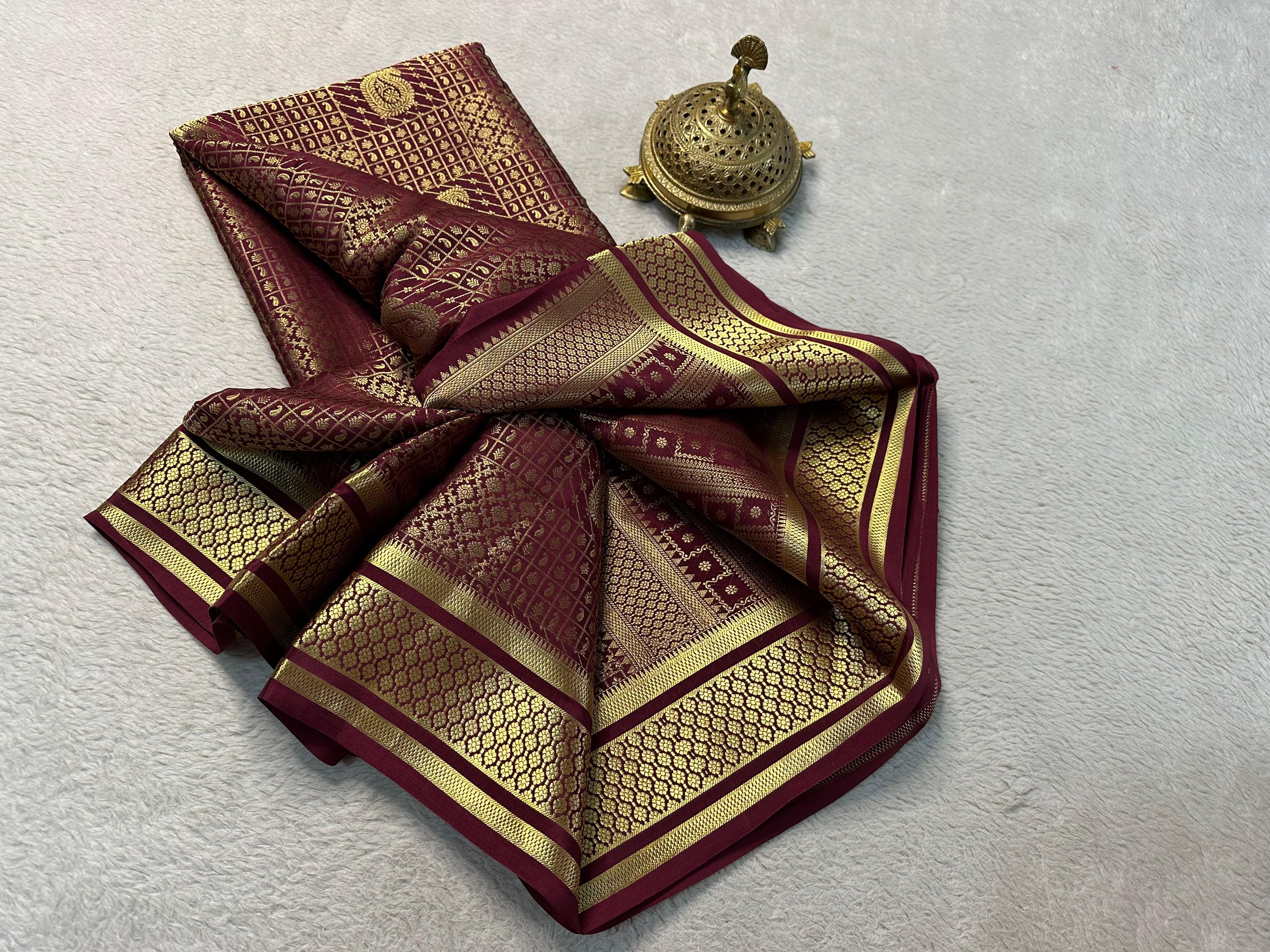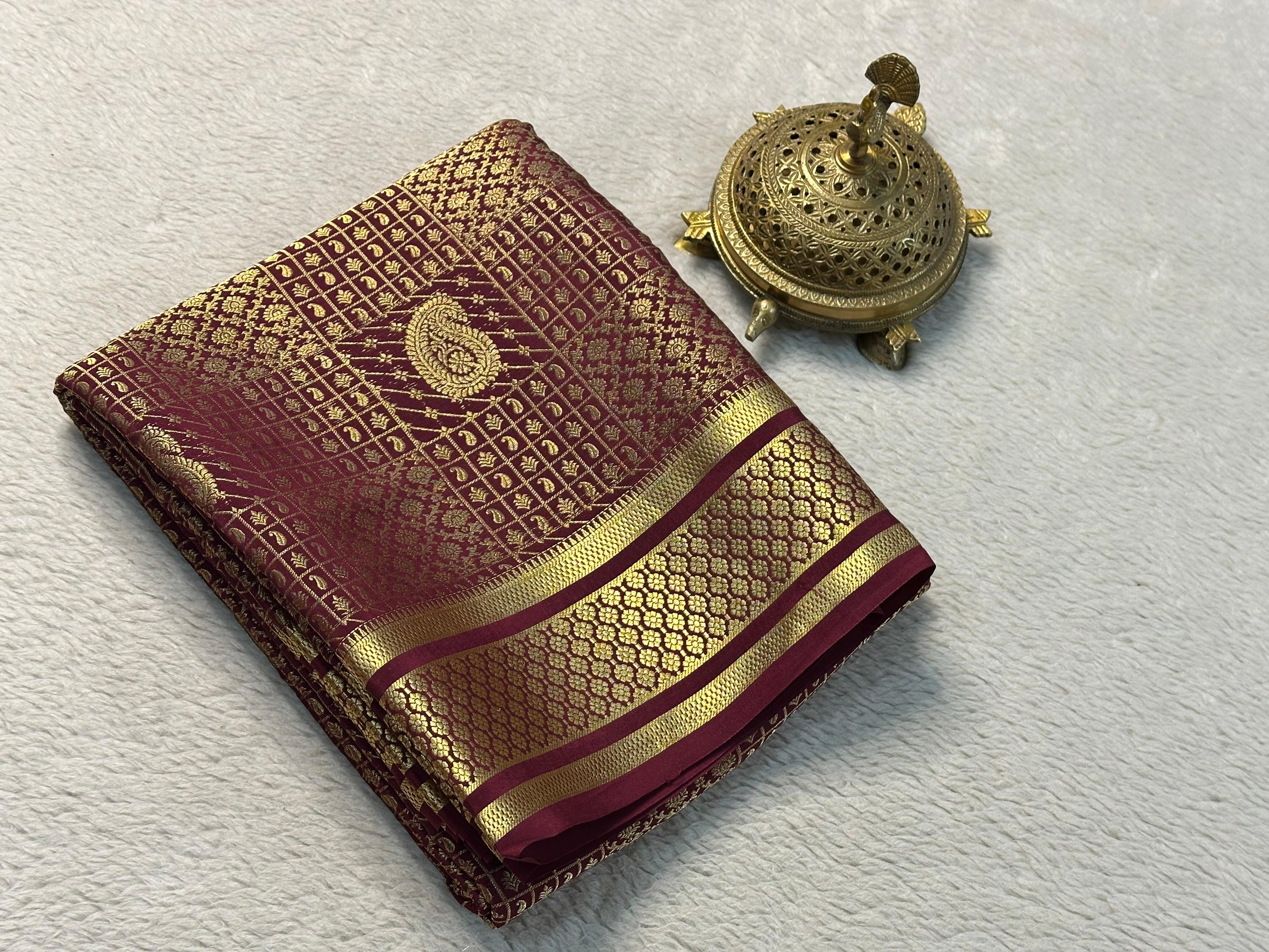 Timeless Beauty: Premium Mysore Silk Sarees in Exquisite Brocade Designs in Maroon