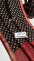 "Brown and white Bagh print Banarasi saree with intricate zari border, epitome of elegance and tradition."