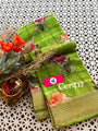 Designer Digital Print Saree Green Soft Silk With Classic Zari Border Work