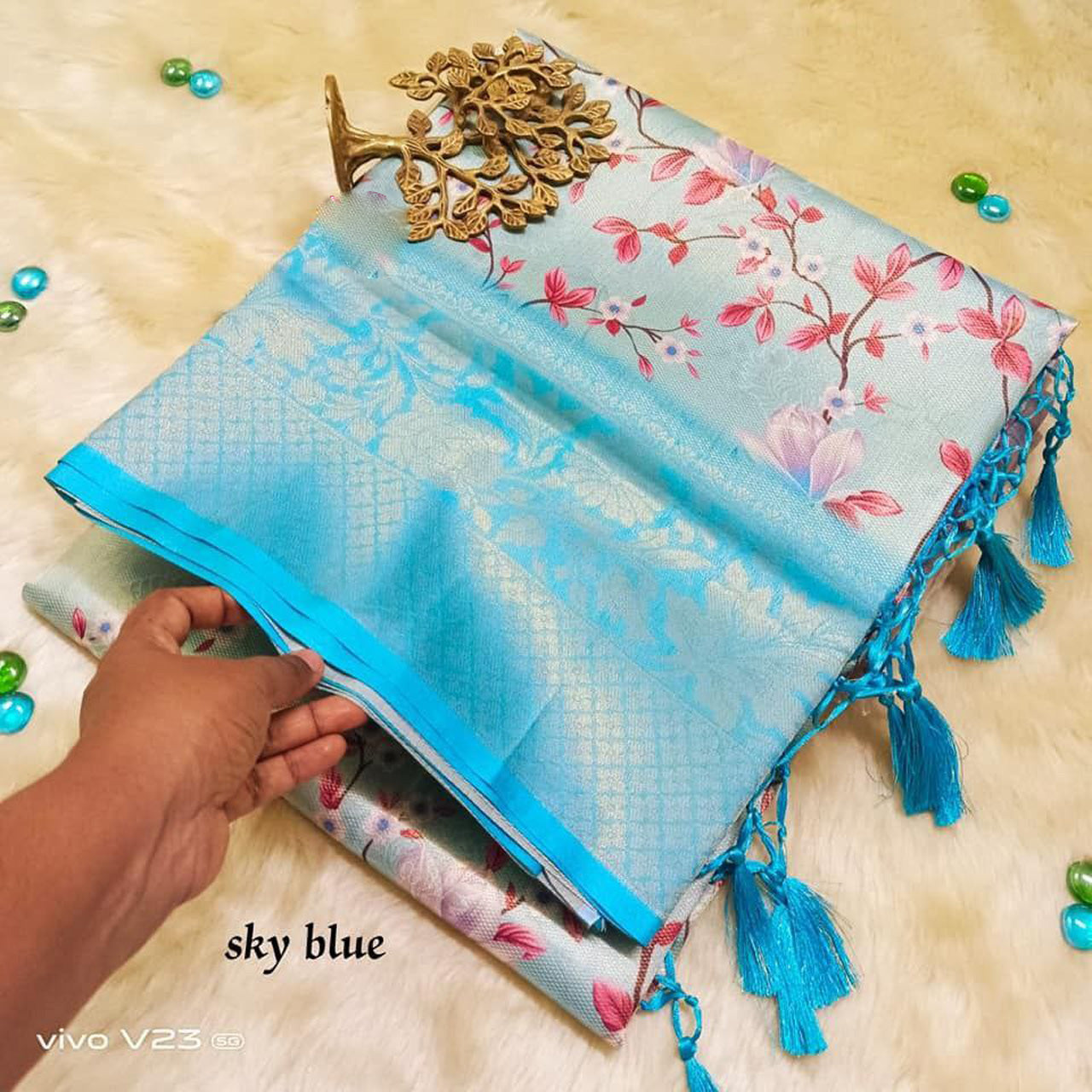 Attractive Soft Silk Sky Blue Color Digital Printed Saree