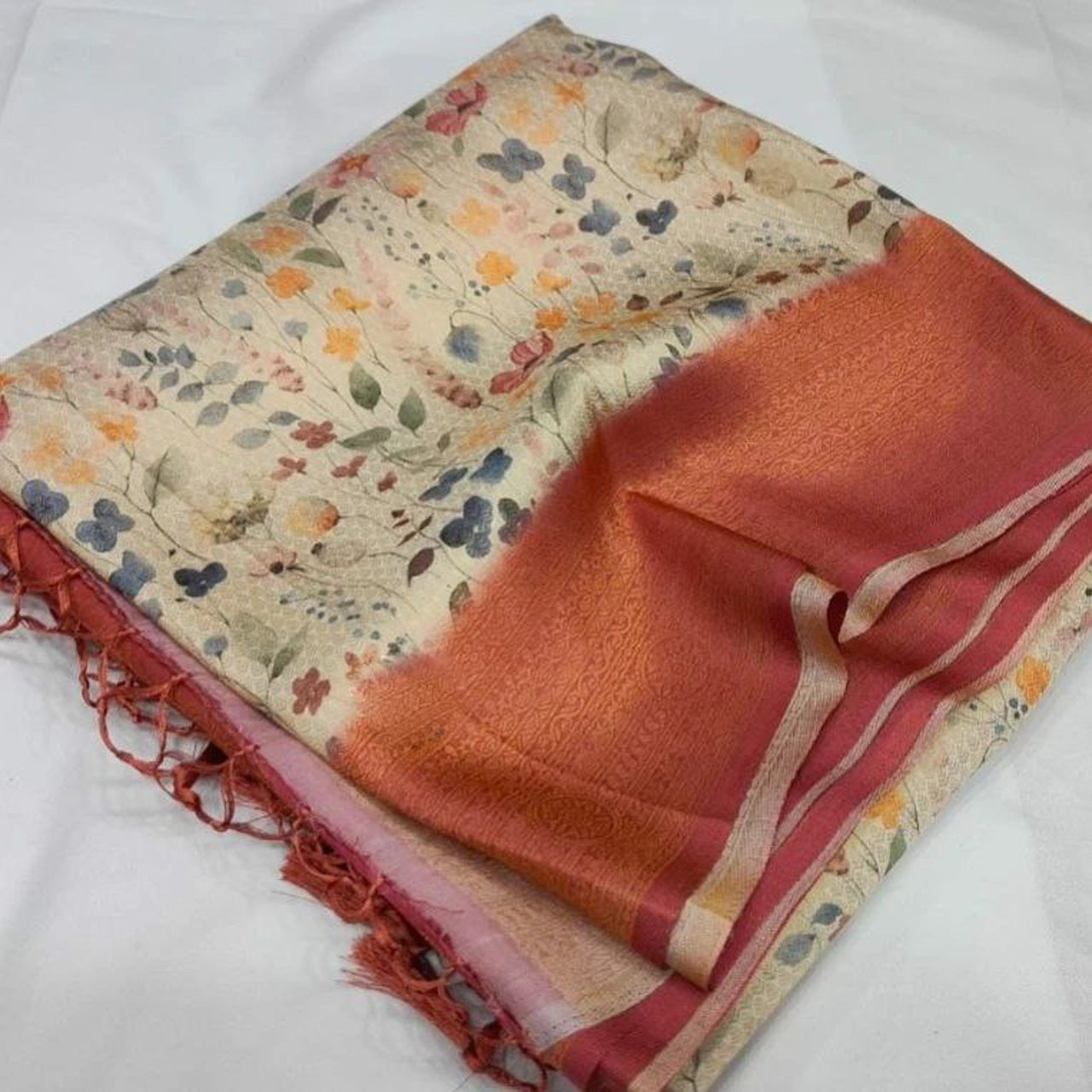 Captivating Beige Soft Silk Saree With Fusion Digital Print