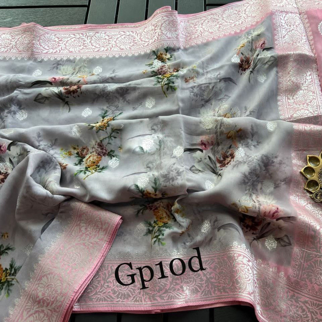 Crepe Georgette Digital Printed Pretty Grey Saree