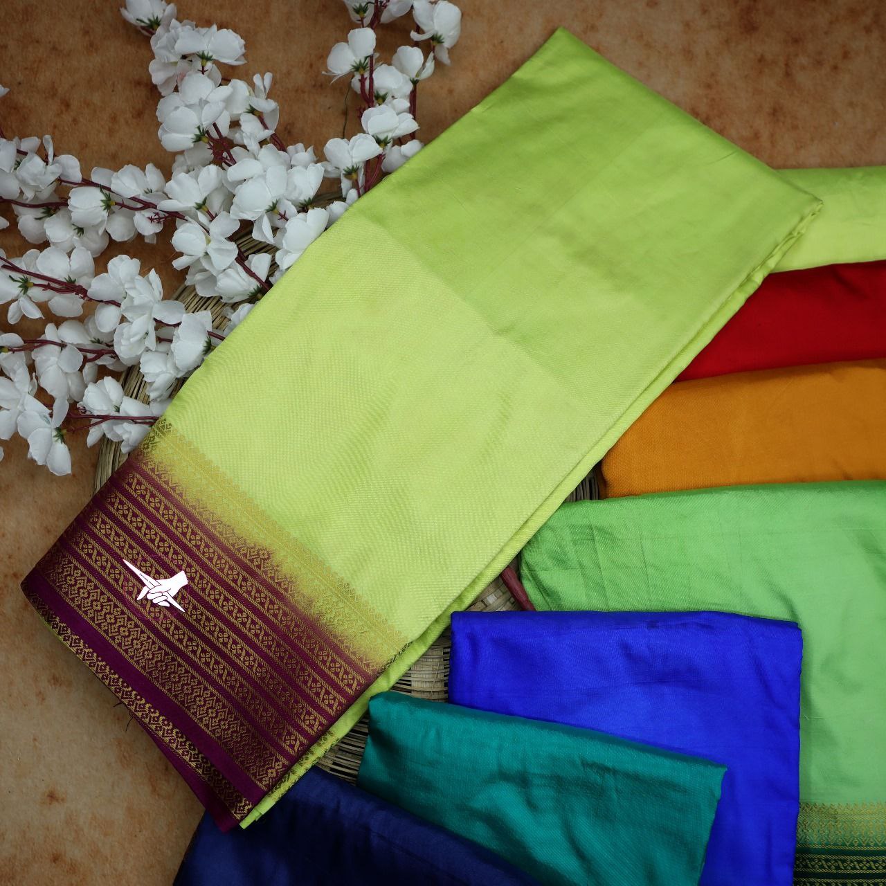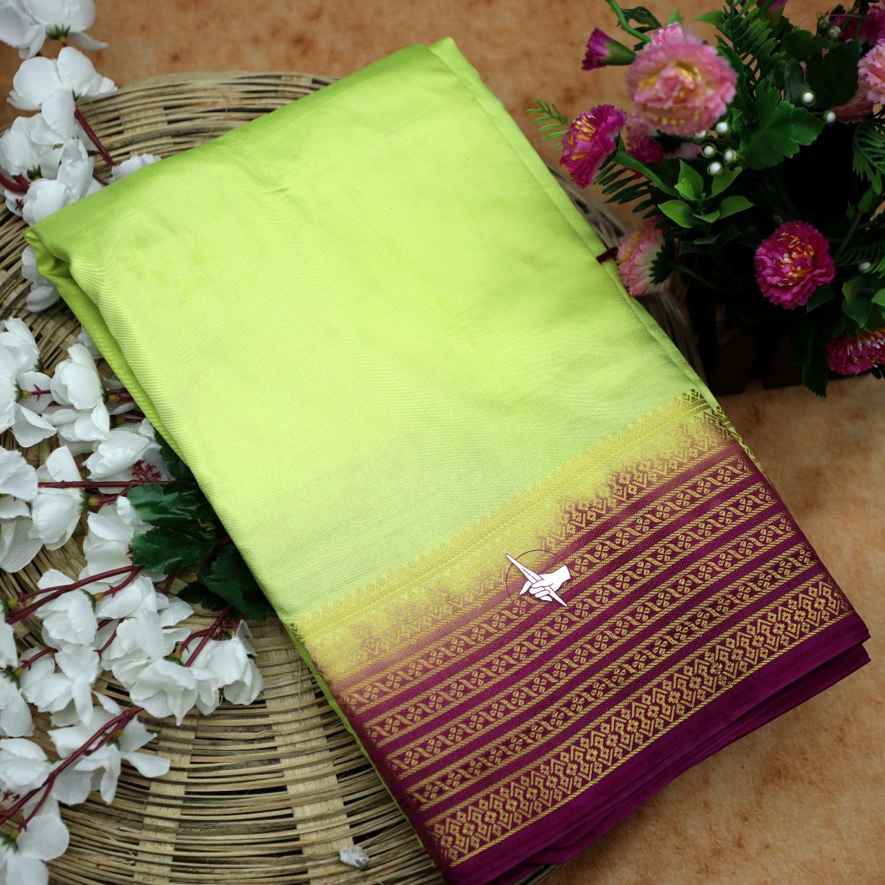 Daily Wear Lemon And Purple Mysore Silk Saree Plain Silk Elegance With Zari Edges