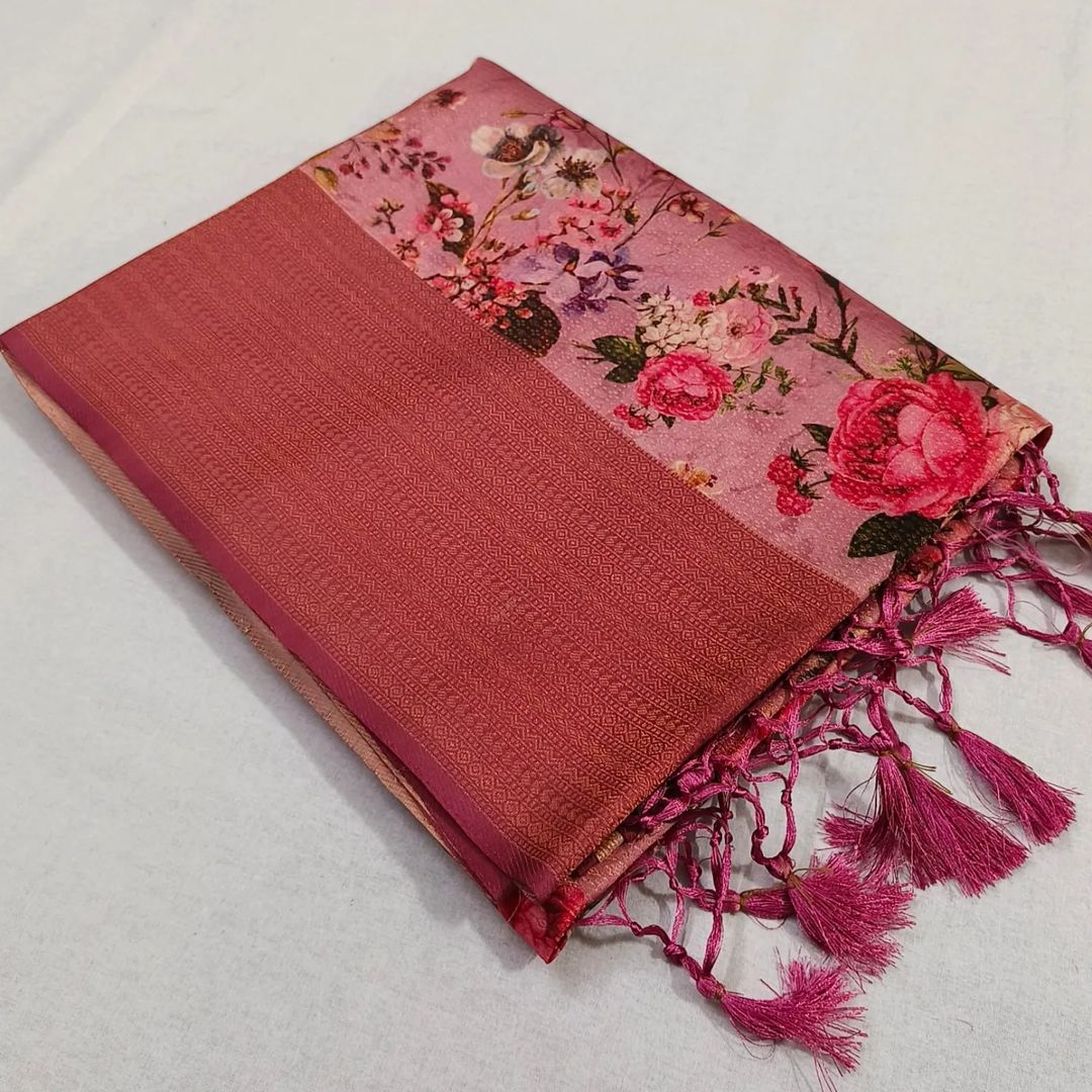 Appealing Pink Traditional Kubera Pattu Soft Silk Saree With Printed Elegance