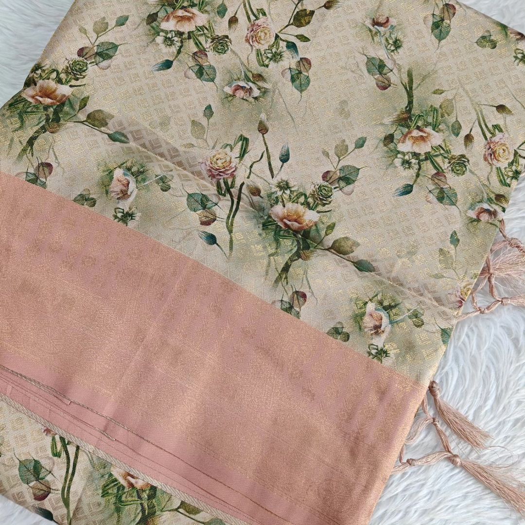 Beige Color Exclusive Digital Printed Rich Pallu Soft Silk Sarees