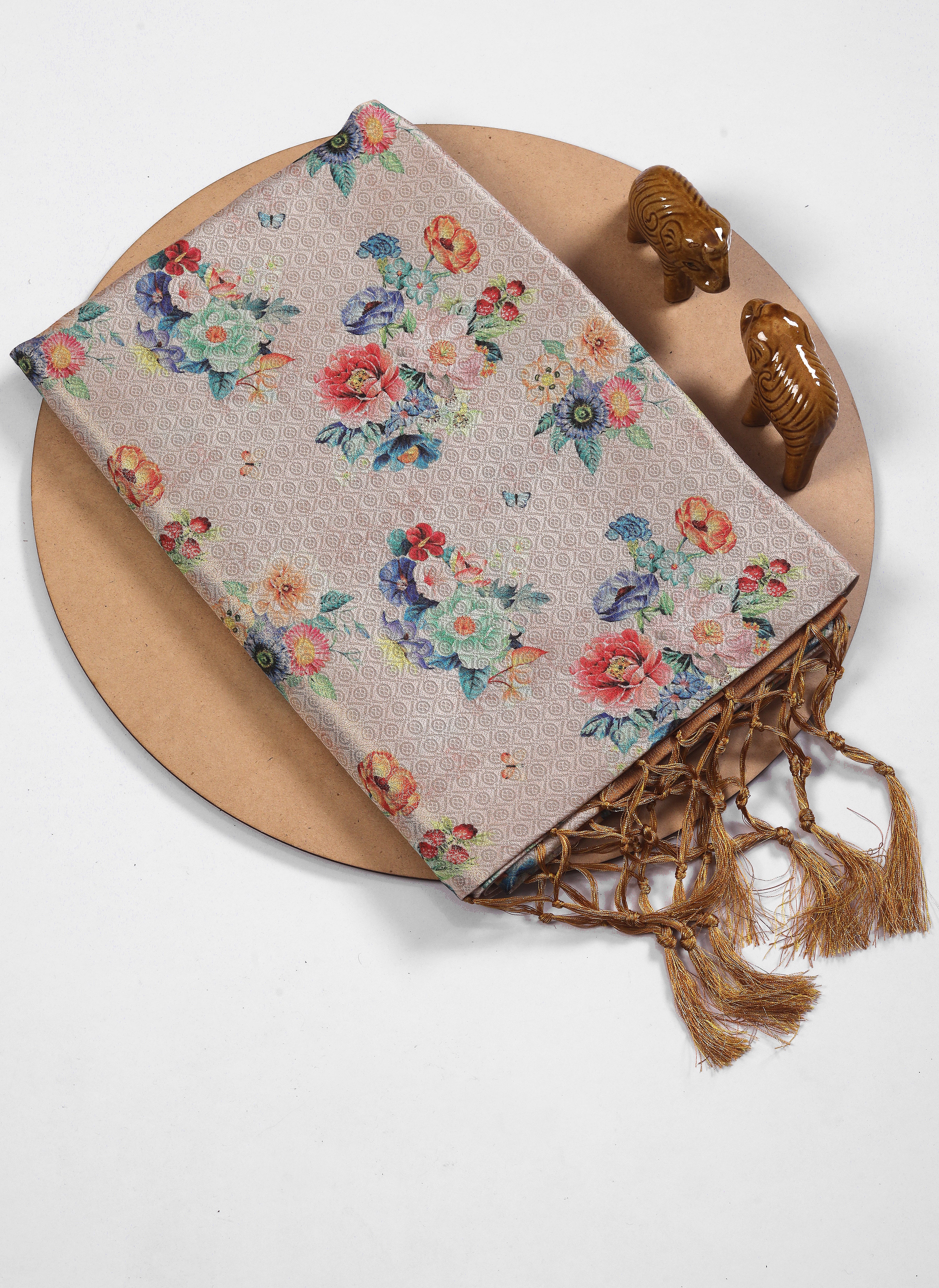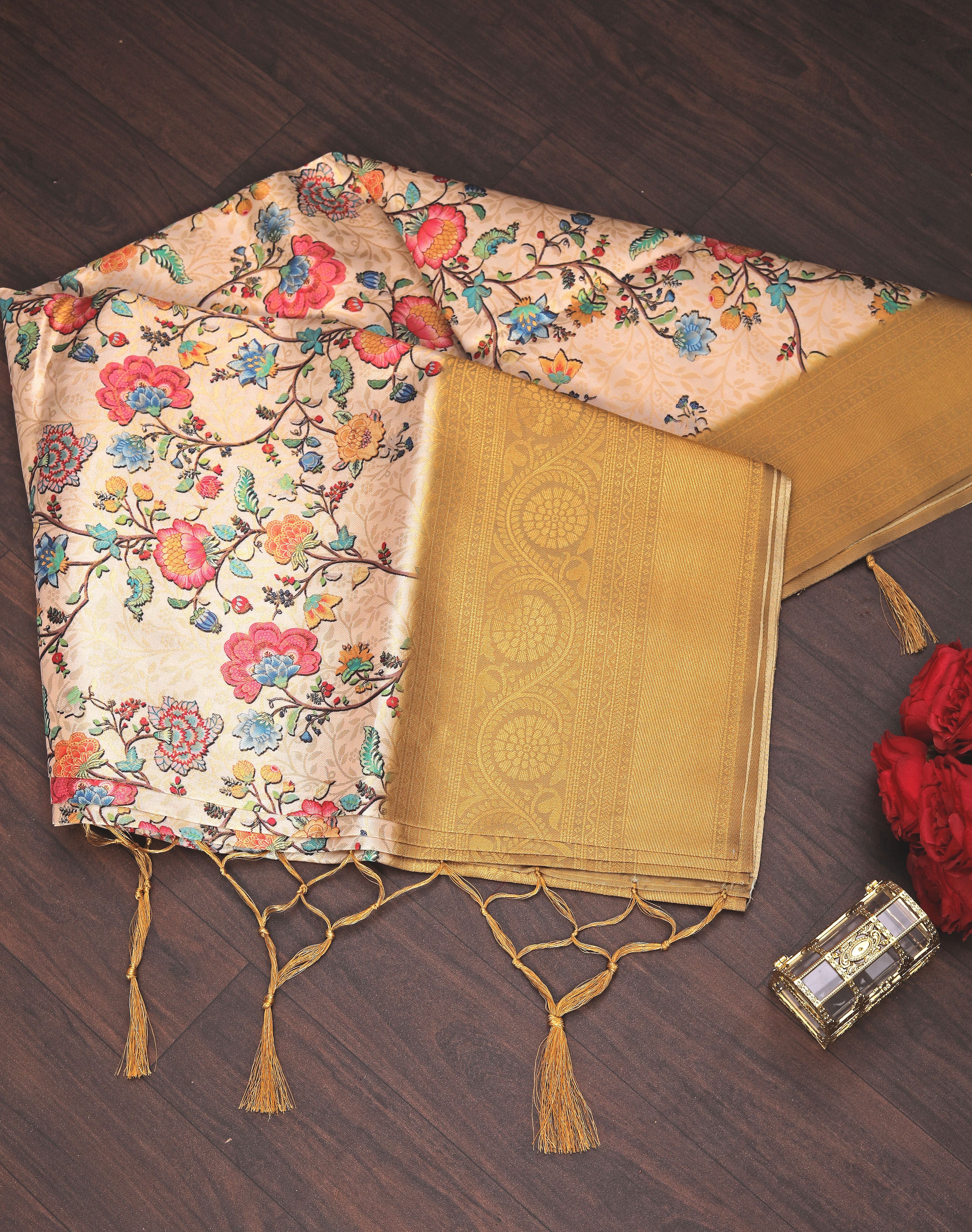 A touch of silk a world of elegance with Softy Silk all over zari work Saree