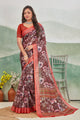 Classy Maroon Linen Saree For Daily Wear Zari Border Elegance