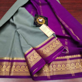 Exclusive Zari Border Silver With Purple Colour Plain Mysore Silk Saree.