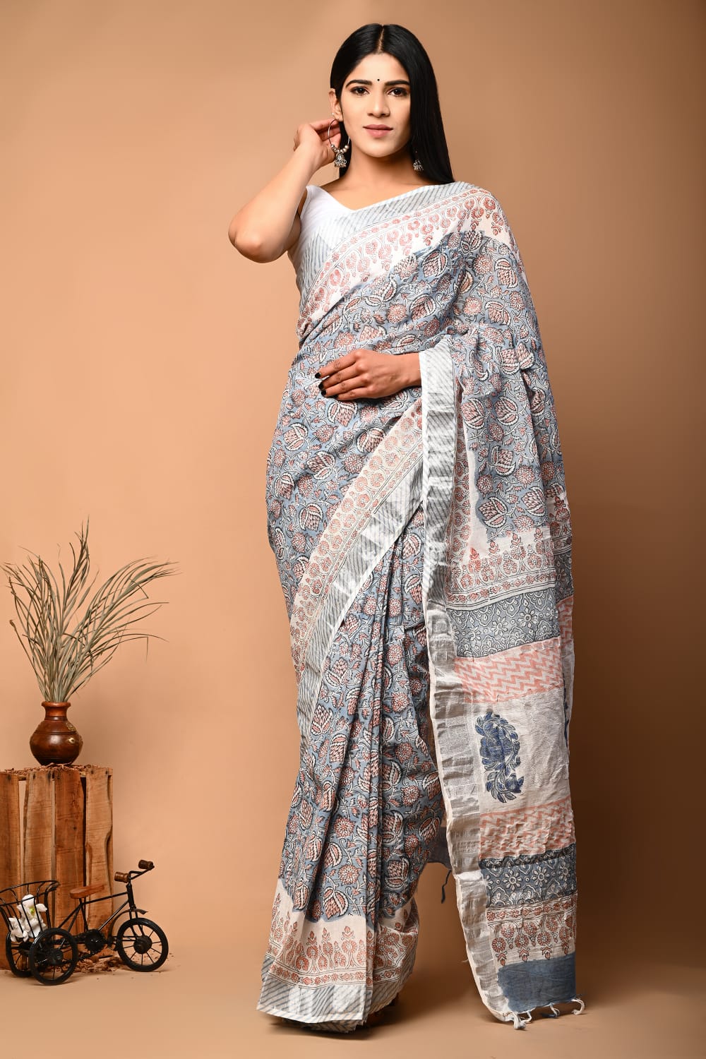 Linen Printed Saree Lightweight With Traditional Zari Touch