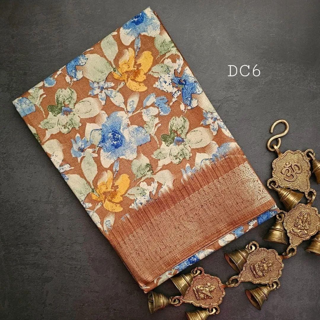 Elegant Brown Semi Tussar Silk Saree Digital Prints With Zari Border Accent