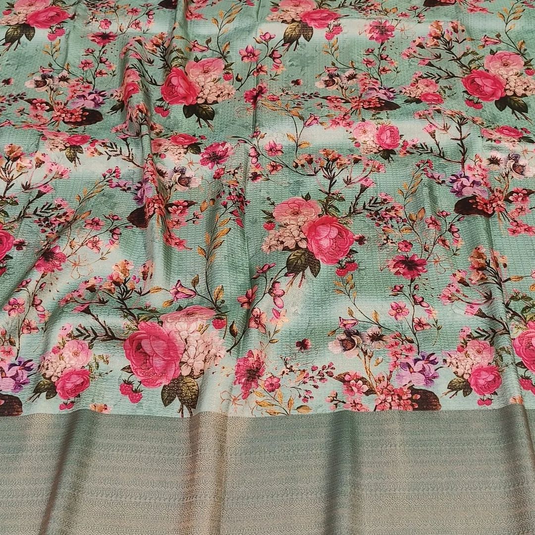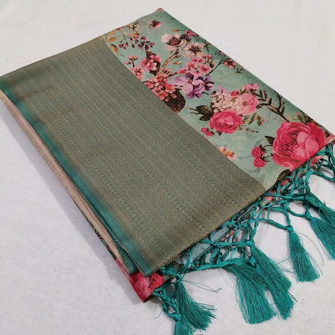 Classic Green Digital Printed Kubera Pattu Saree In Smooth Soft Silk