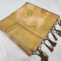 Cream Vibe Soft Silk Saree Featuring Digital Prints And Fancy Blouse