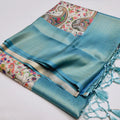 Eye Catching Sky Blue Digital Printed Soft Silk Saree For Festivals