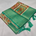 Sangeet Wear Soft Silk Digital Printed Rich Pallu Sea Green Color Saree