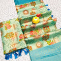 Trendy Sea Green Soft Silk Saree With Modern Print