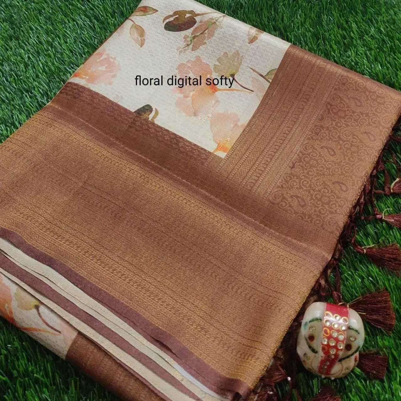Beige Color Exclusive Digital Printed Rich Pallu Soft Silk Sarees