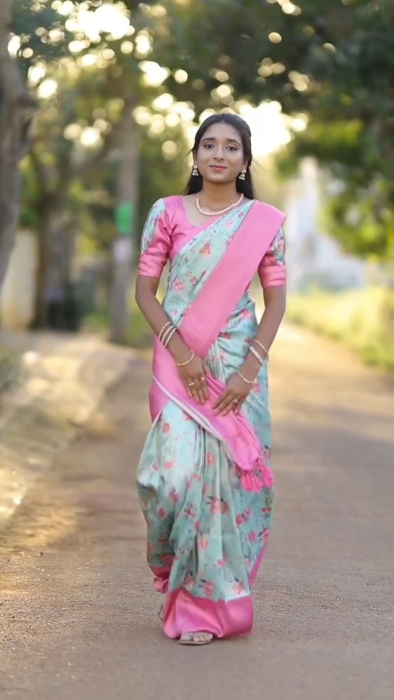 Cyan Pink Traditional Soft Silk Digital Print Saree