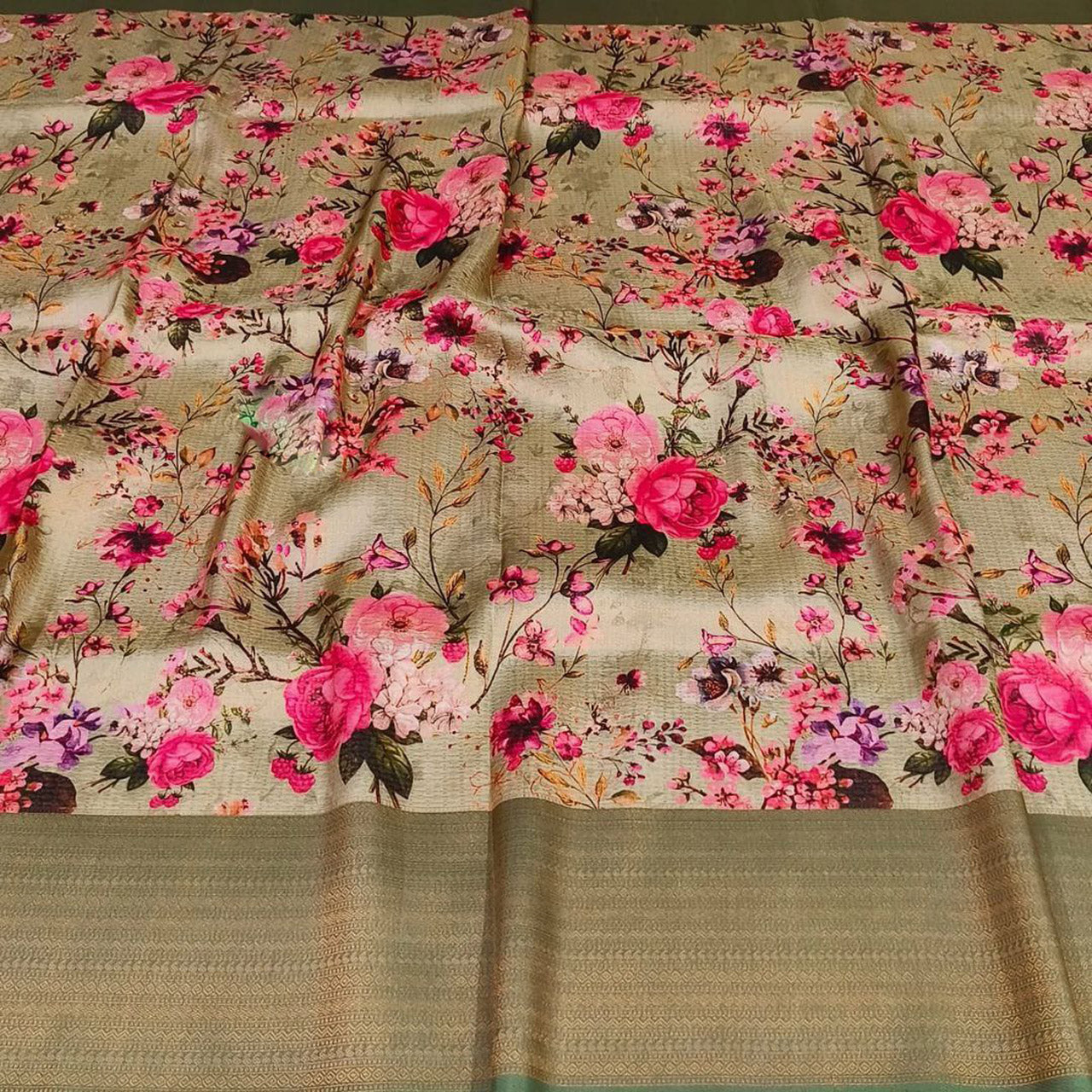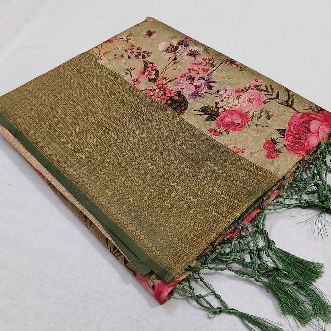 Urban Royalty Green Soft Silk Saree With Digital Prints