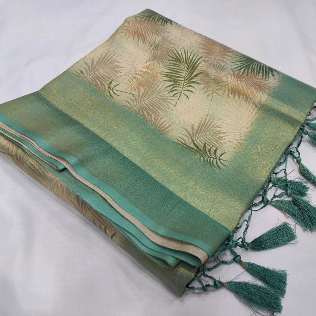Luxe Layers Glamorous Sea Green Printed Silk Saree With Designer Blouse