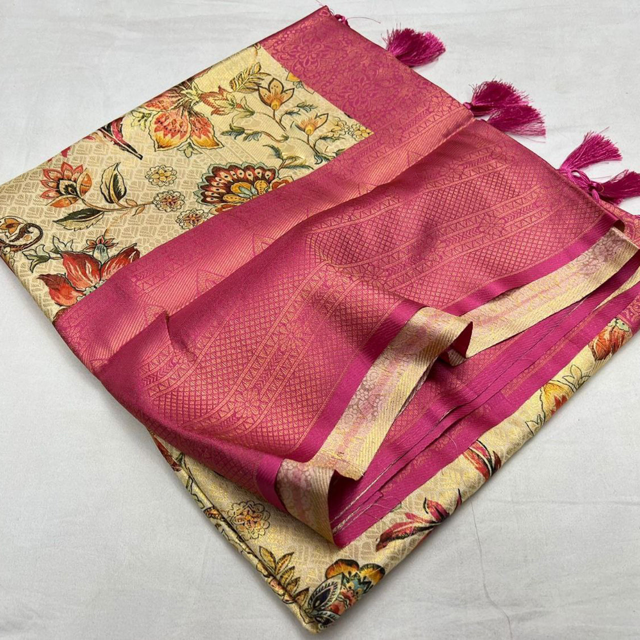 Whimsical Yellow Soft Silks Digital Printed Saree