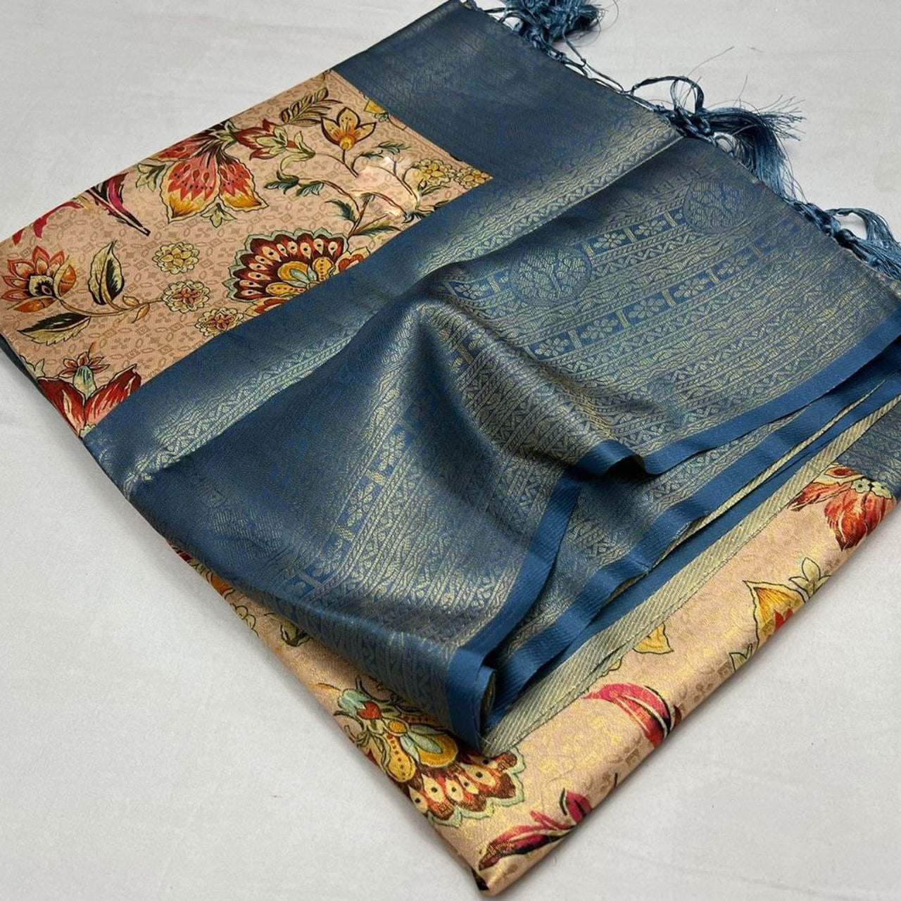 Royal Light Cyan Soft Silks Digital Printed Saree