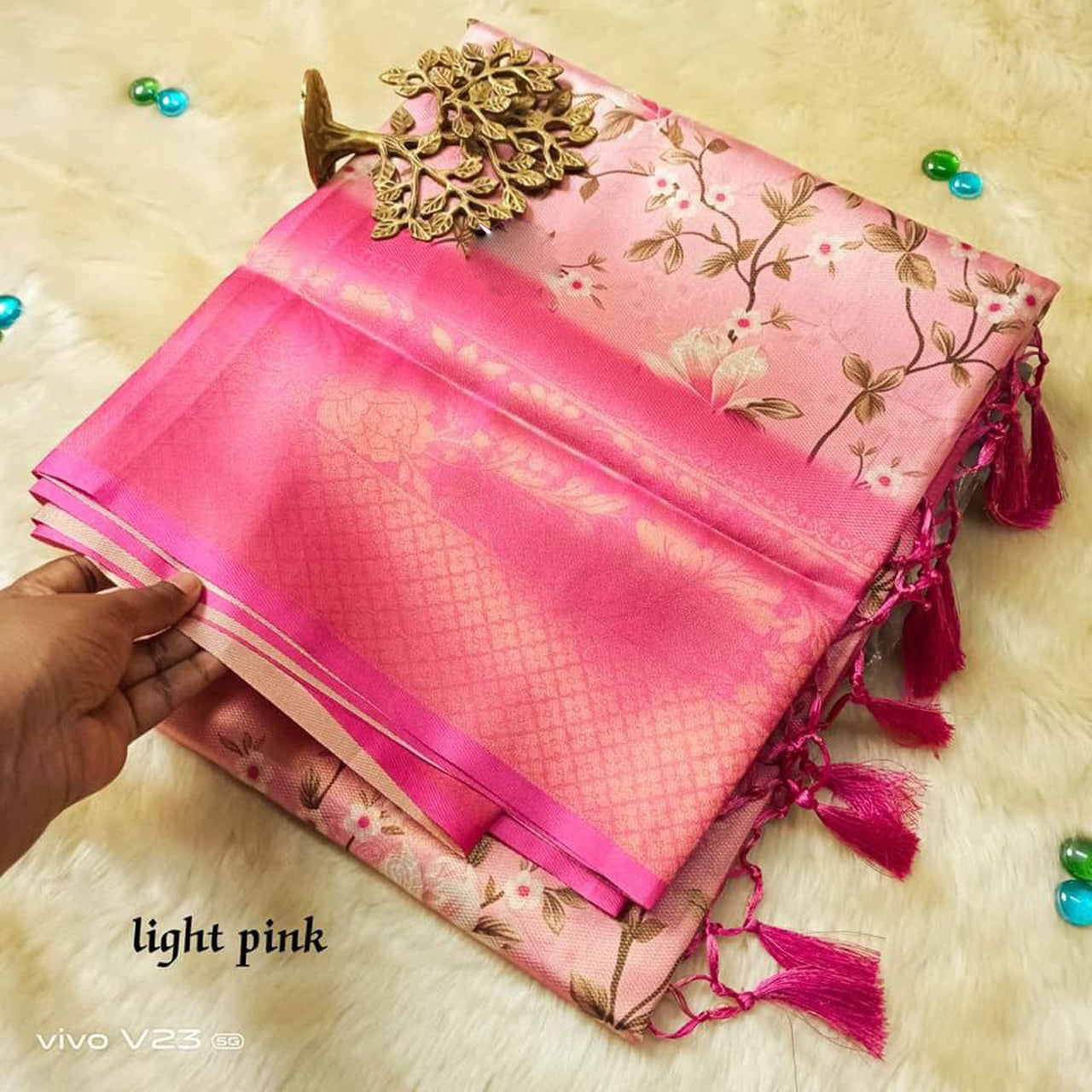 Vibrant Light Pink Dream Weave Soft Silk Saree