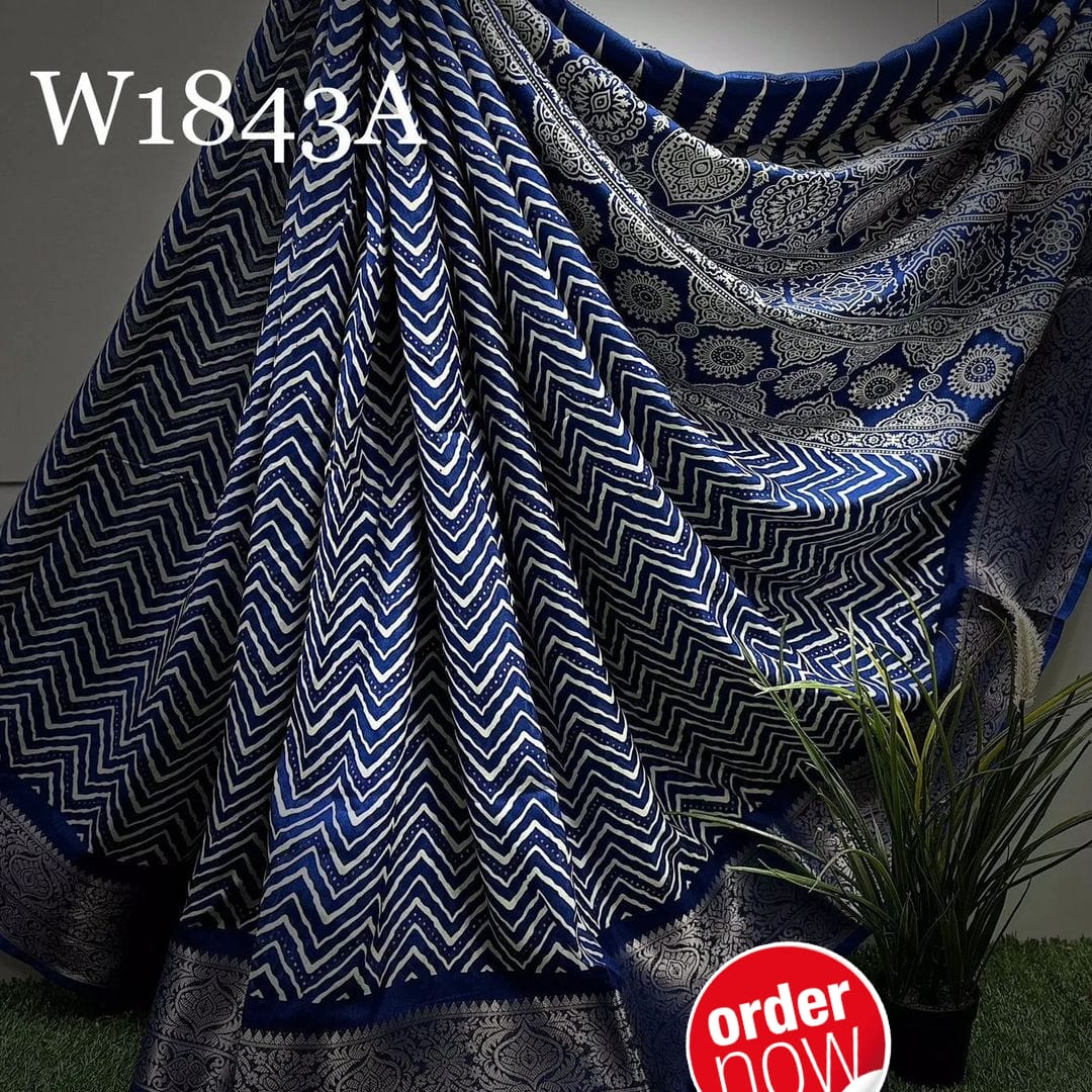 Regal Blue Dola Silk Digital Print Saree With Elegant Zari Border