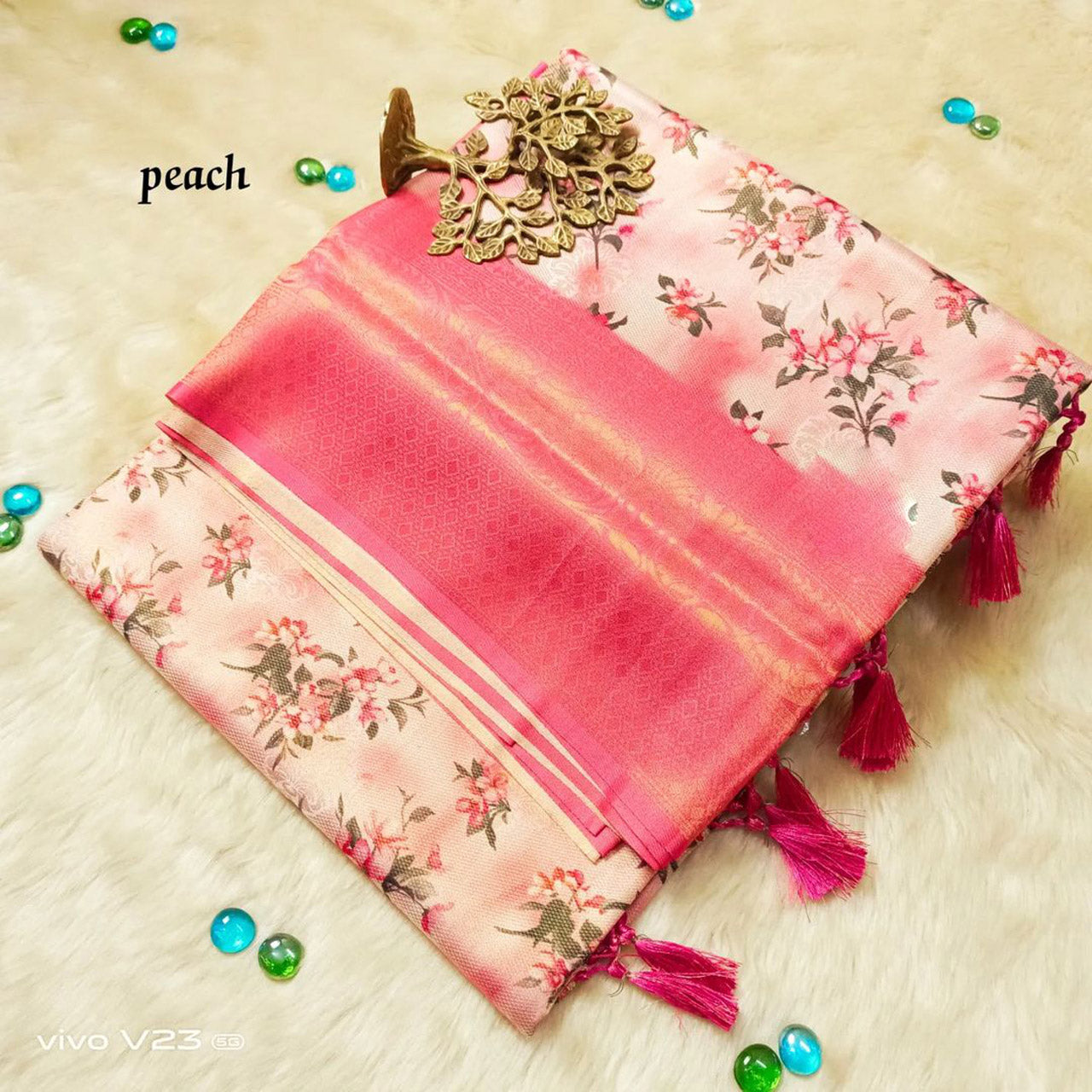 Soft Silk Fabric Peach Color Digital Printed Saree