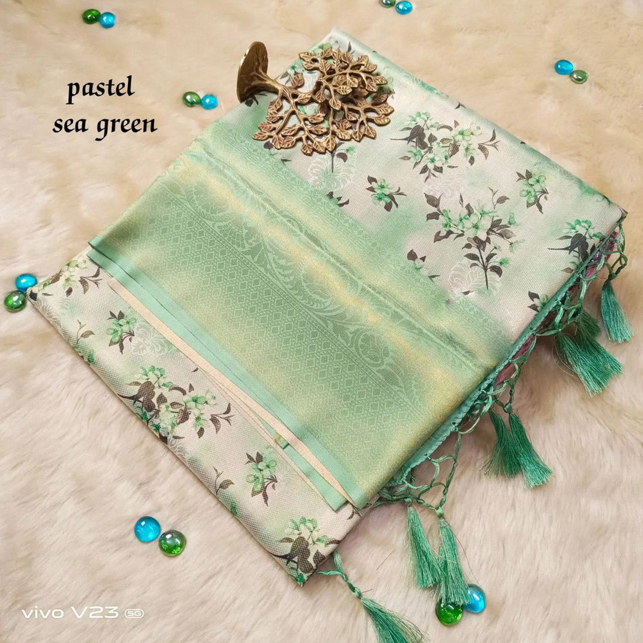 Sea Green Soft Silk Fabric Digital Printed Saree