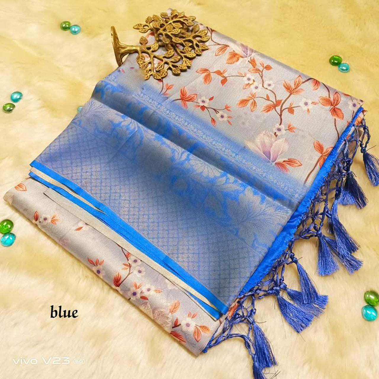 Soft Silk Fabric Blue Fancy Digital Printed Casual Saree