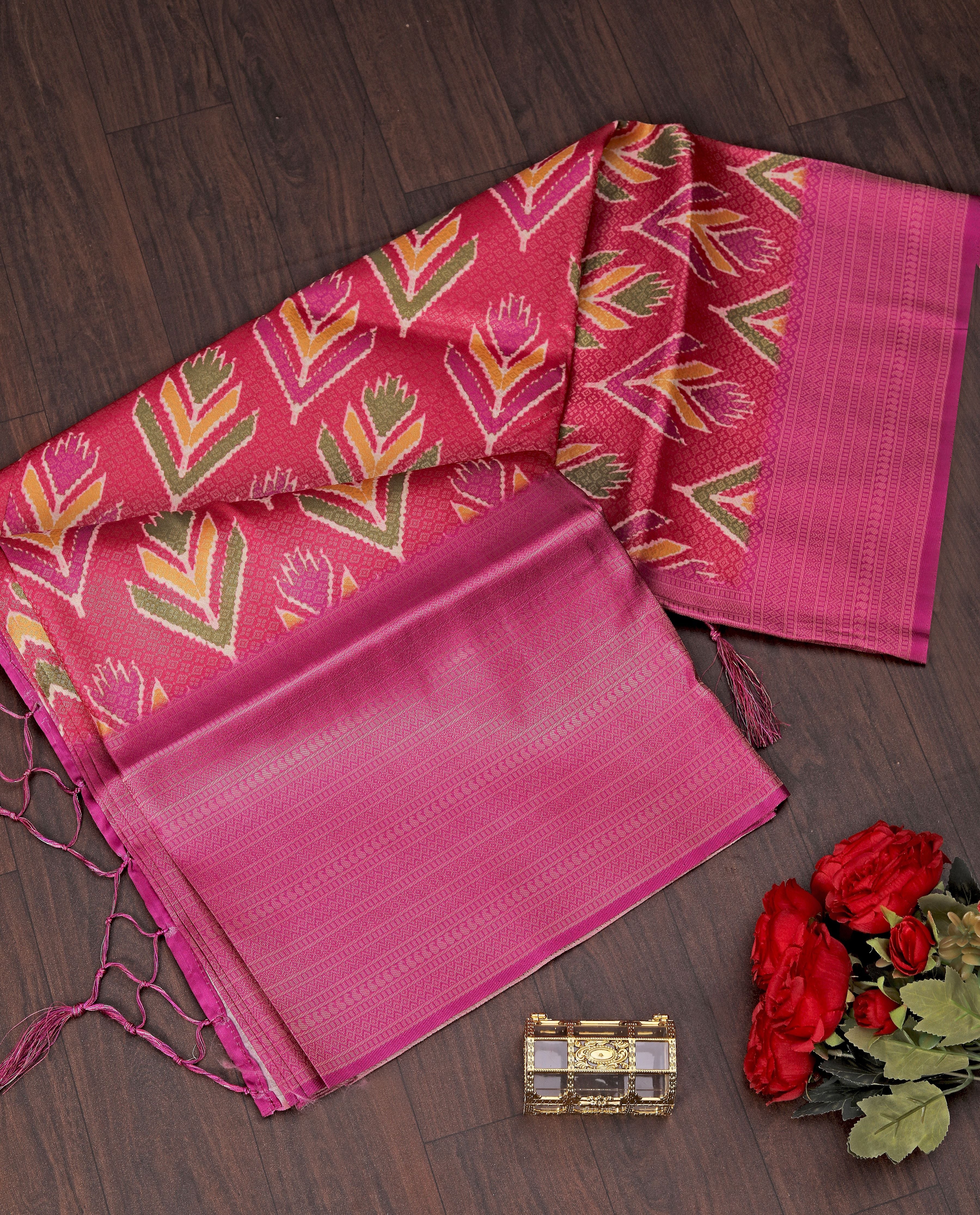 Vibrant Ikkat Print Saree Handloom Digital Fusion