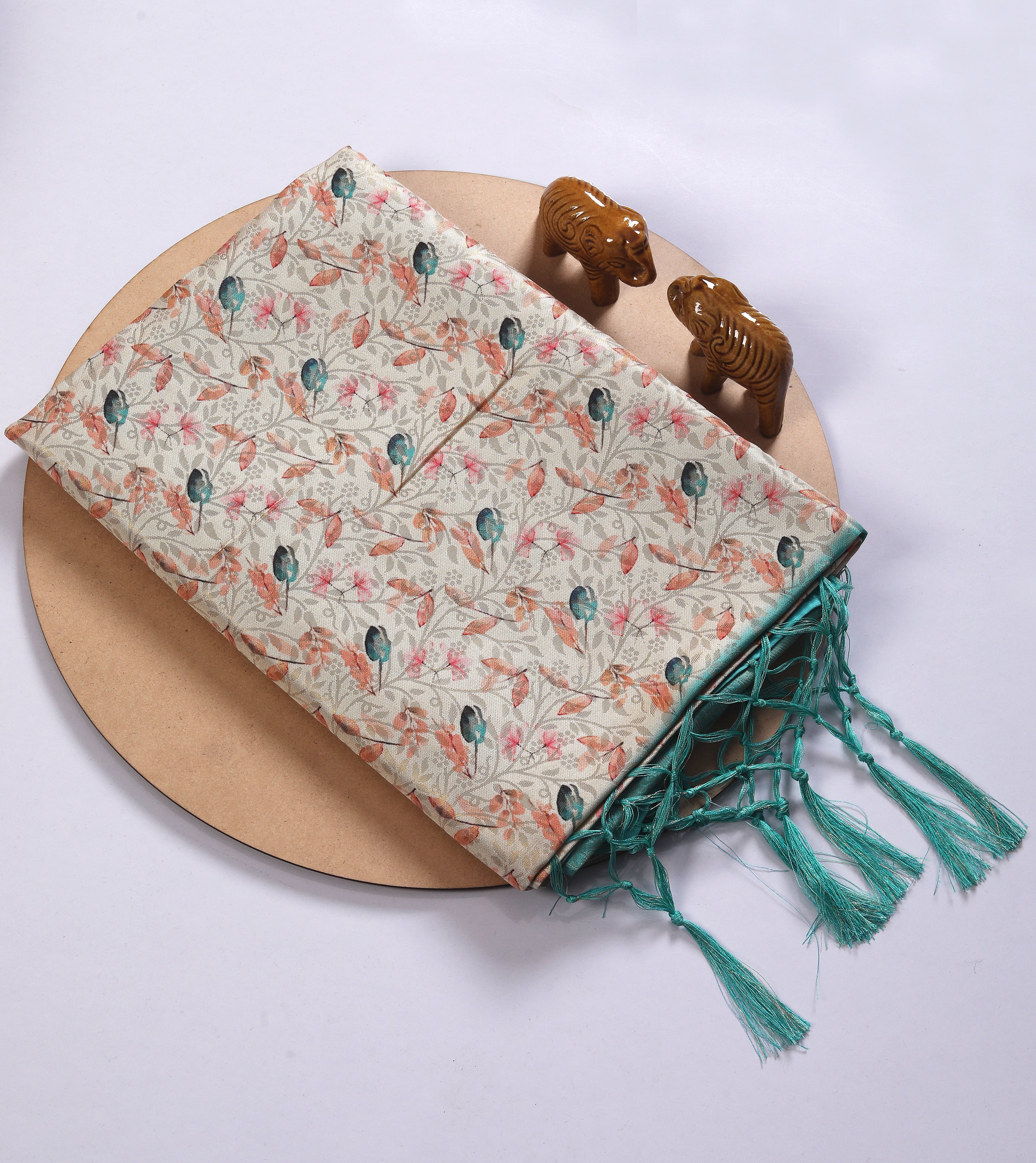 Alluring Green Dola Silk Saree With Ethnic Zari Touch And Digital Art Prints