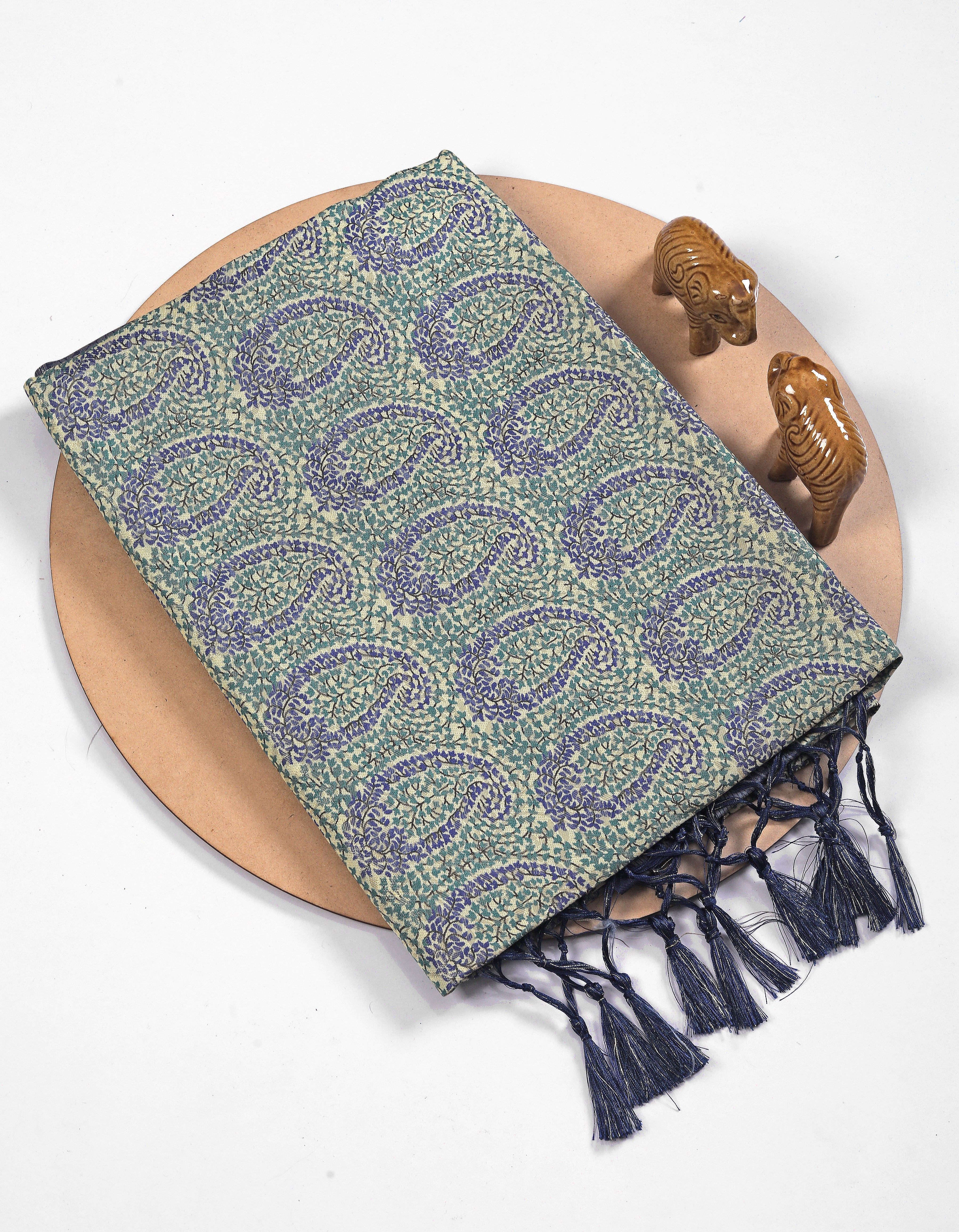 Classic Green Zari Work Dola Silk Saree With Intricate Digital Prints