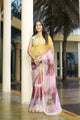 This traditional Tissue Silk saree is beautifully crafted with digital prints and comes with an unstitched matching blouse piece,